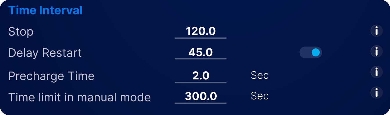 | LE2 | Delay Restart | If enabled with the Monitor switch, The BMS will wait for this number of seconds after it starts transitioning out of a critical state before leaving its critical state and resuming normal operation |
