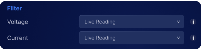 | Current (QL3) | If you are experiencing occasional errors in your current due to external equipment (inverters, motors etc.) you can enable additional digital filtering with this option. "Live Reading" is the default, try the other options and see what works best. |